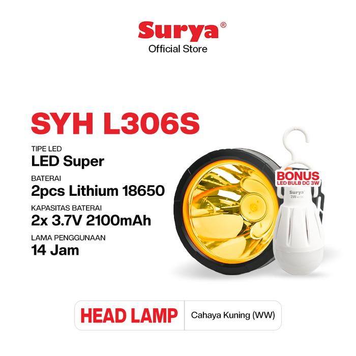 SURYA LAMPU SENTER KEPALA LED SYH L306S RECHARGEABLE