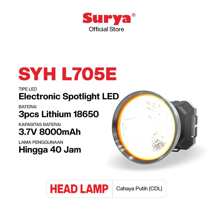 SURYA LAMPU SENTER KEPALA LED SYH L705E RECHARGEABLE
