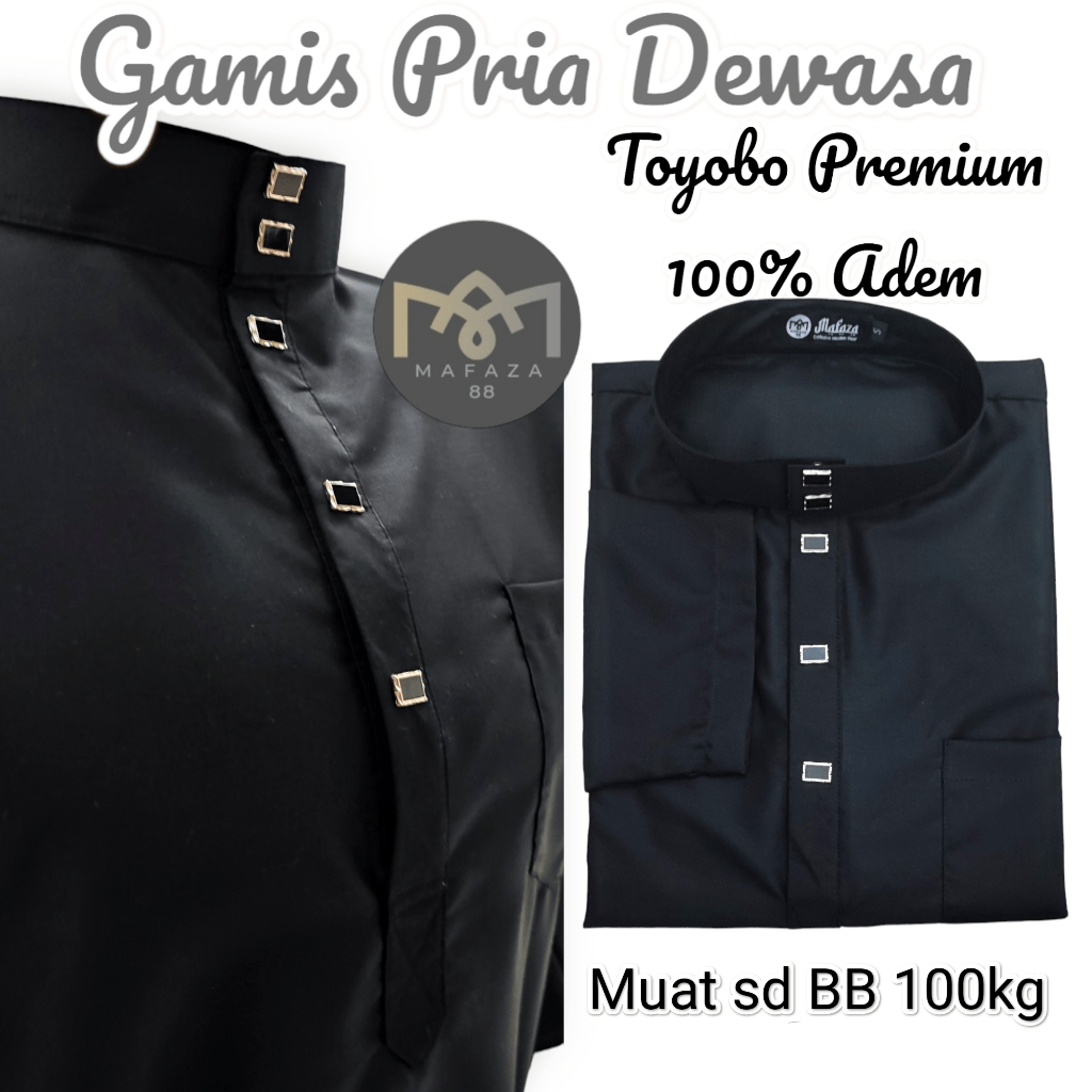 Gamis Jubah Muslim Pria TOYOBO PREMIUM ADEM Lengan Panjang Polos Sholat Umroh Lebaran Hitam