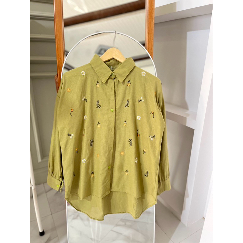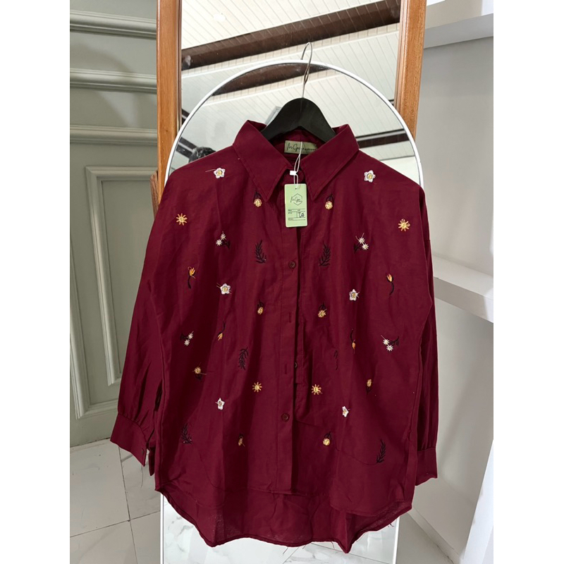Elga Blouse / Kemeja Wanita Bordir Linen / Kemeja Wanita Lengan Panjang / Kemeja Wanita Bordir Wanita