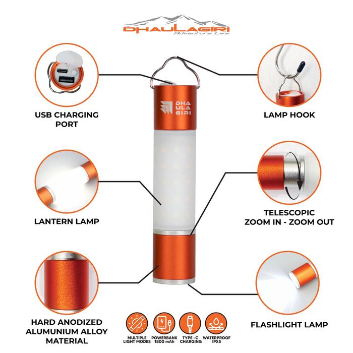 DHAULAGIRI RECHARGEABLE FLASHLIGHT 707 / SENTER MULTIFUNGSI - ORANGE
