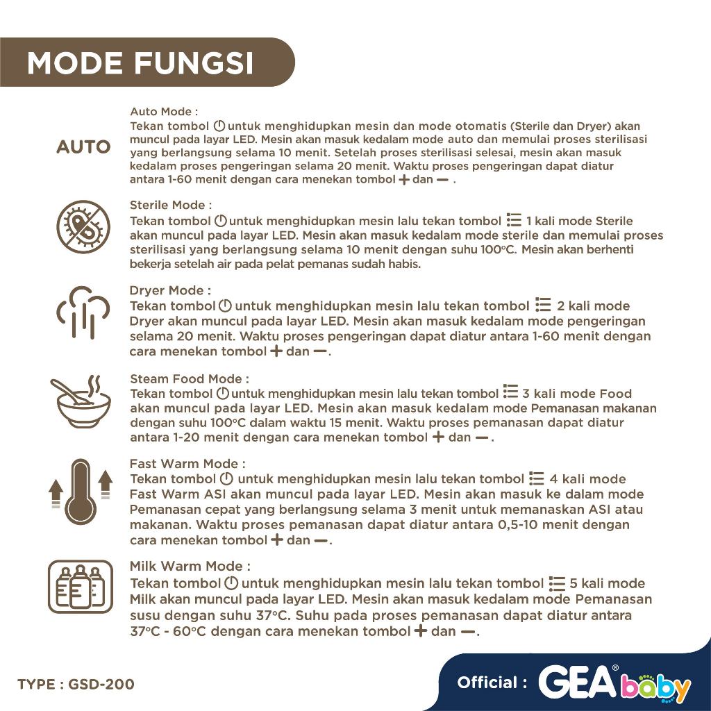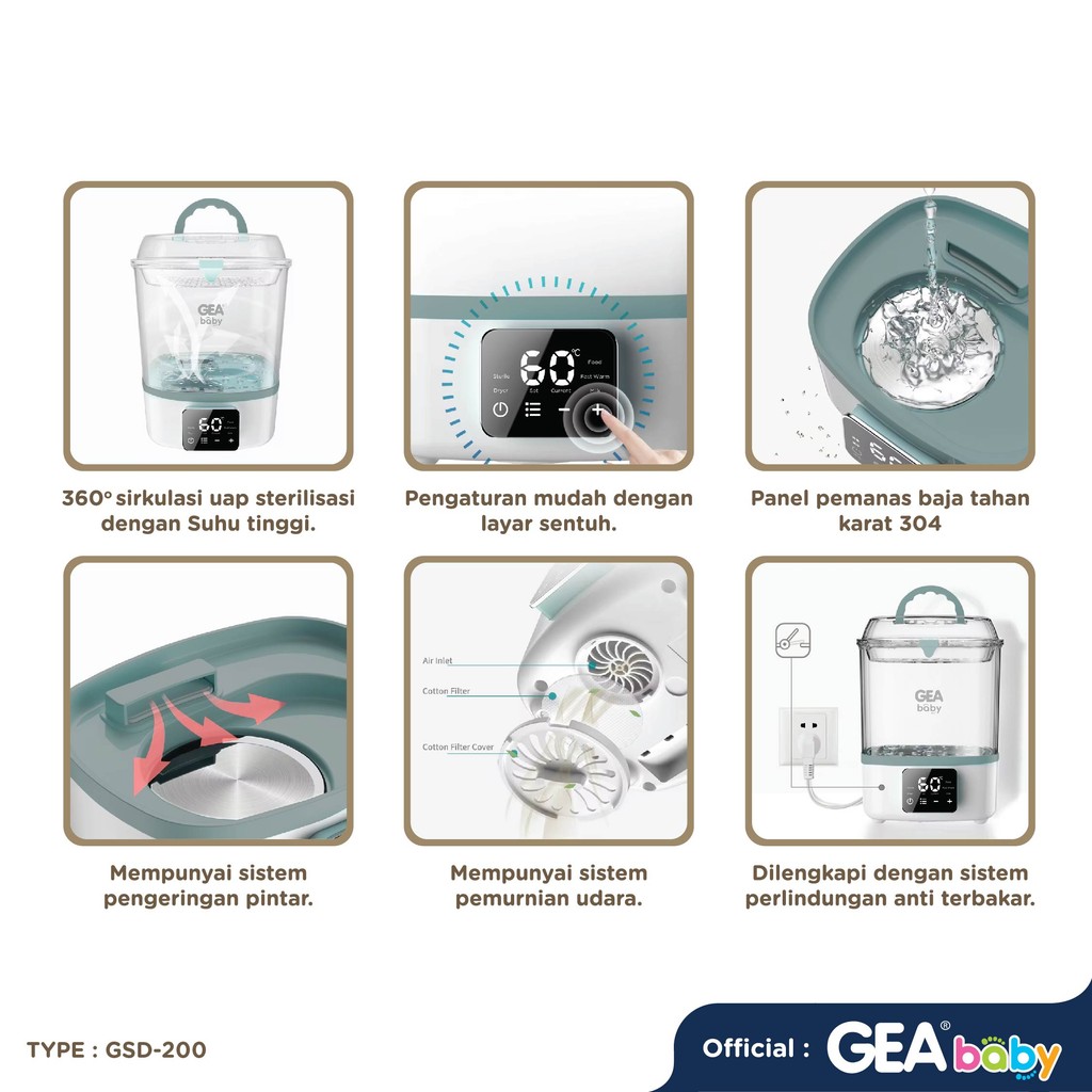 GEA Baby Multifunction Warmer Sterilizer Dryer GSD-200 Penghangat Susu & Makanan Steril Botol Bayi Pengering Botol Susu Warmer Steam