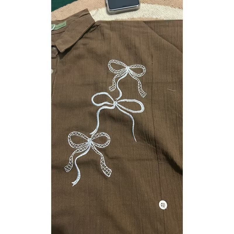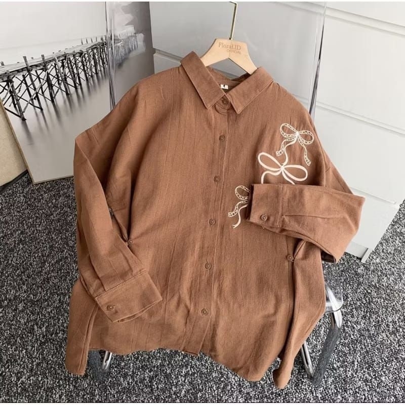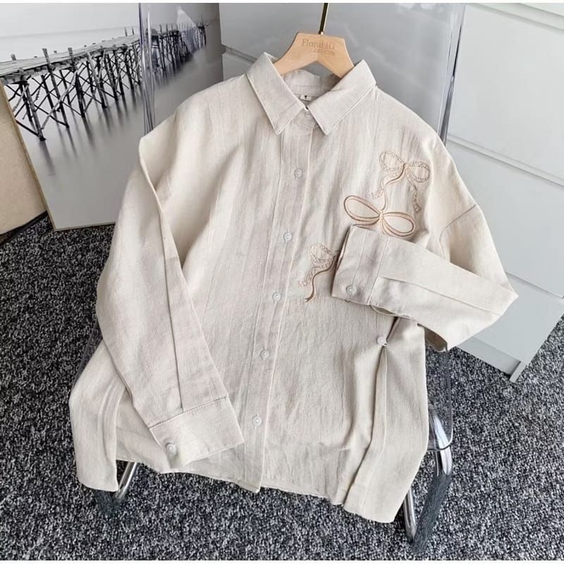 Haruka Angel Blouse Bordir Ribbon Shirt Atasan Kemeja Wanita Linen Premium