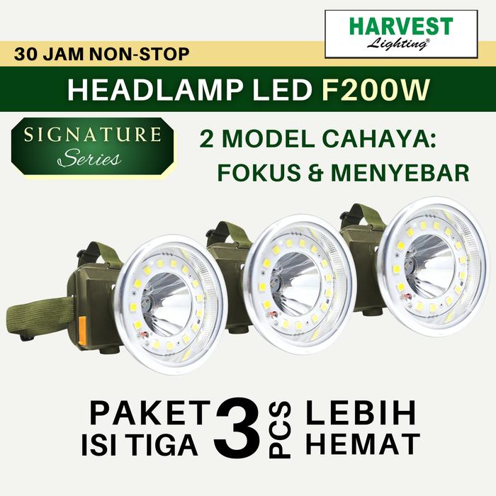 HARVEST LIGHTING HEADLAMP F200W SIGN 2IN1 PAKET 3 SENTER KEPALA LED - PUTIH DGN TAS