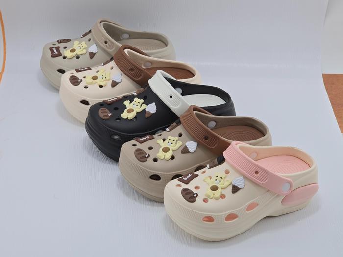 [Asfer]Sandal Baim Wanita Terbaru Sandal Kodok Lucu Sepatu Wedges Karet Sendal - 8-Hitam+Putih, 35/36