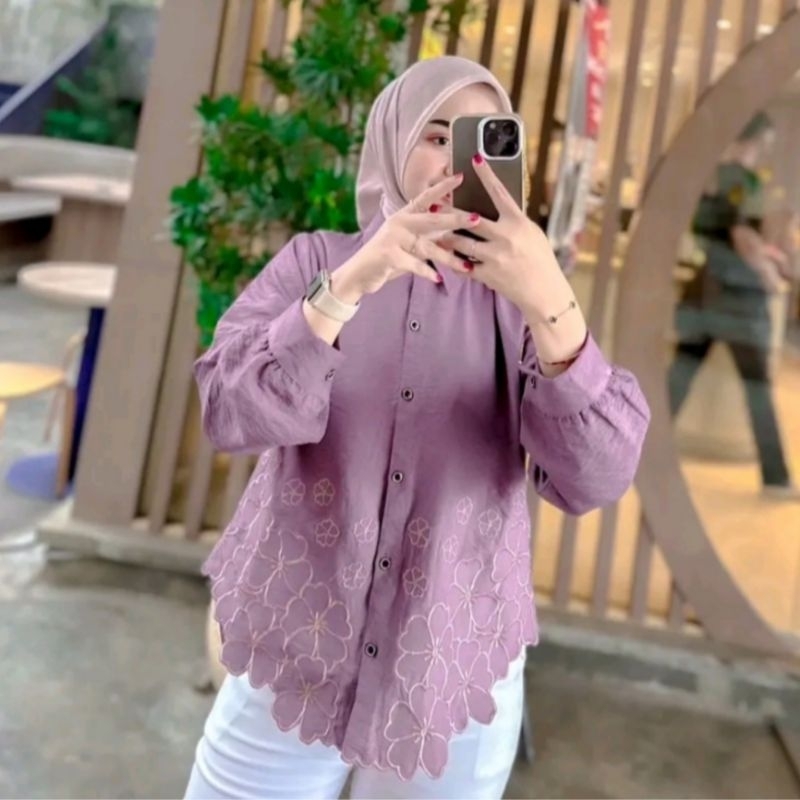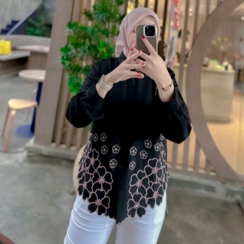 Laura Kemeja Atasan Blouse Wanita Bordir Bunga Korean Style