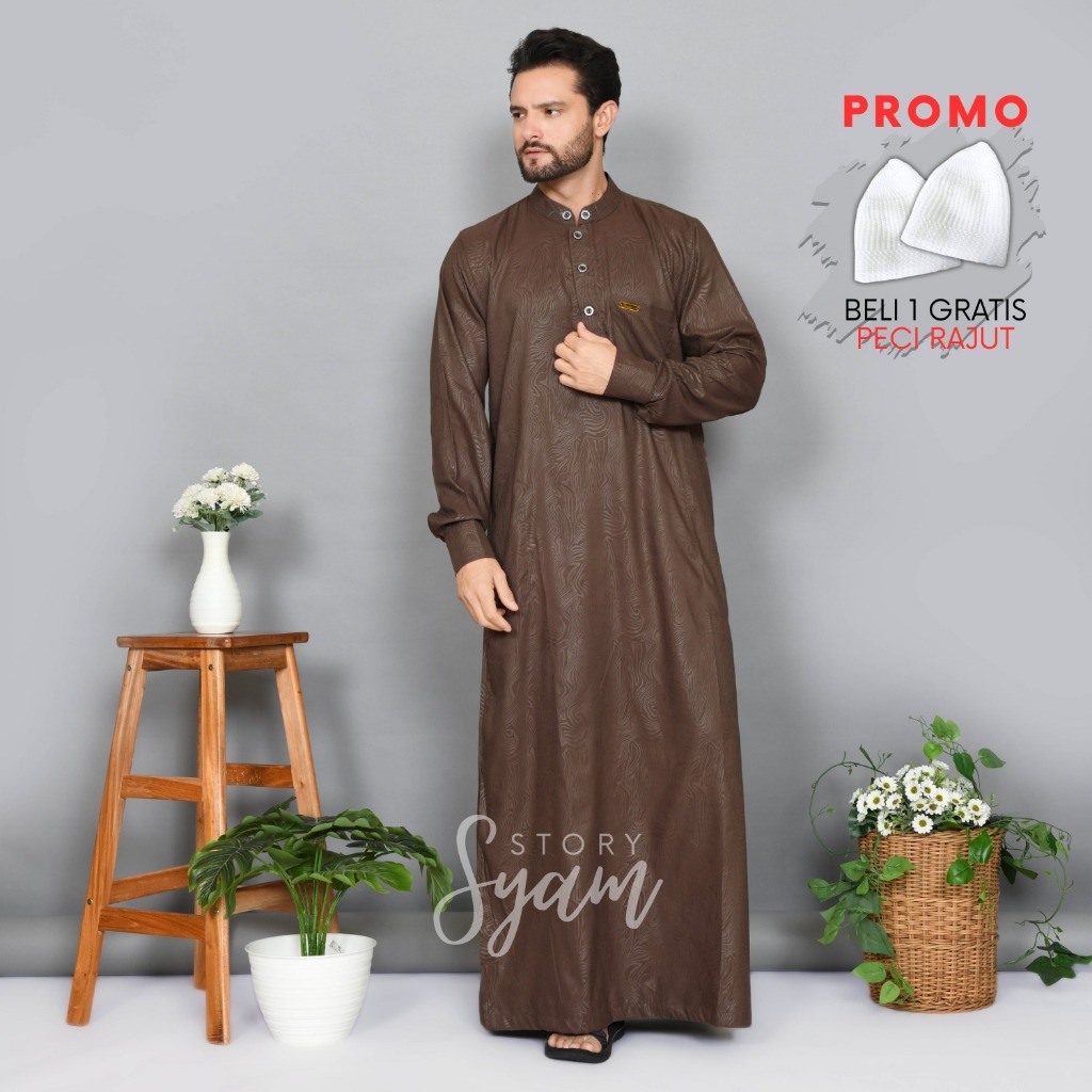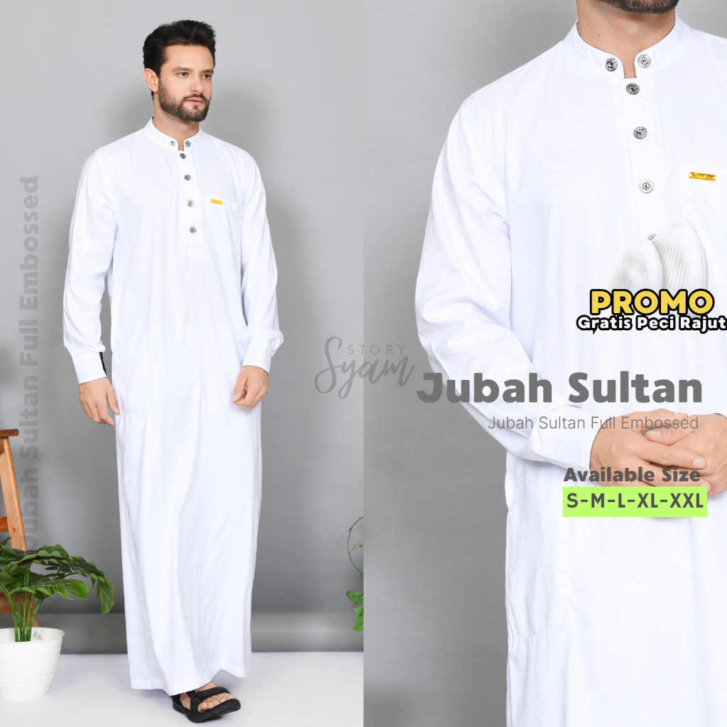 Jubah Pria Sultan Embos Manset Premium Syam Story Variasi Kancing Dada Lengan Panjang Kerah Mandarin