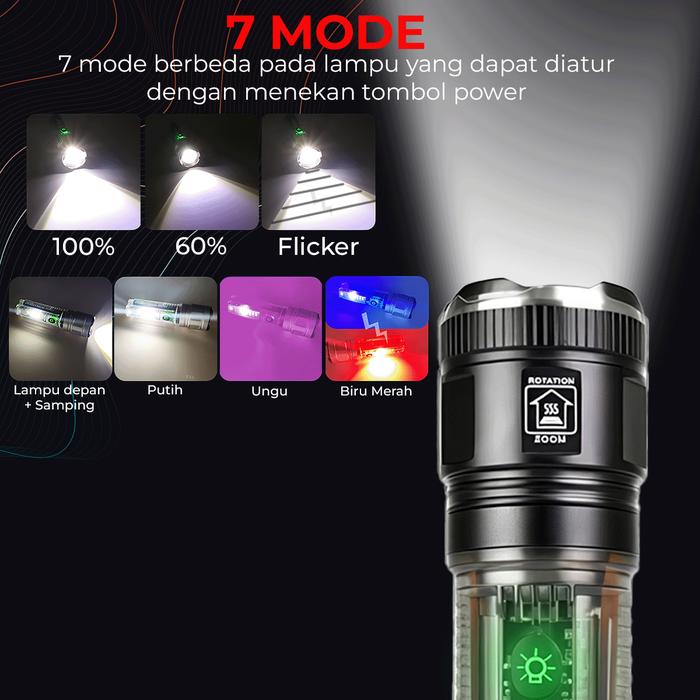 SUKSESTECH SENTER JARAK JAUH DAN JARAK DEKAT MEMILIKI 7 MODE CAHAYA TERANG MULTIFUNGSI POWERBANK SENTER-X-36 - SENTER