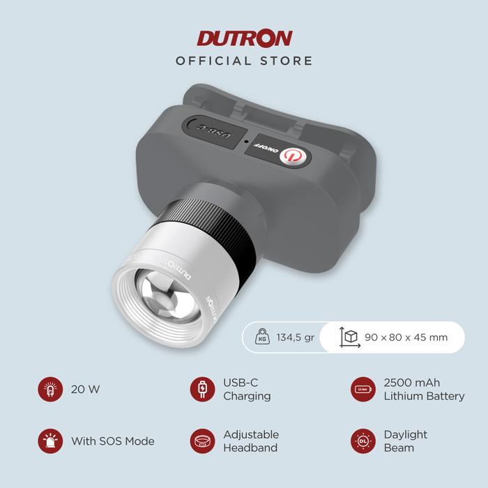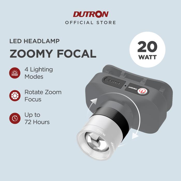 DUTRON SENTER KEPALA LED ZOOMY FOCAL RECHARGEABLE WATER RESISTANT 20 WATT DENGAN FITUR ZOOM IN DAN ZOOM OUT