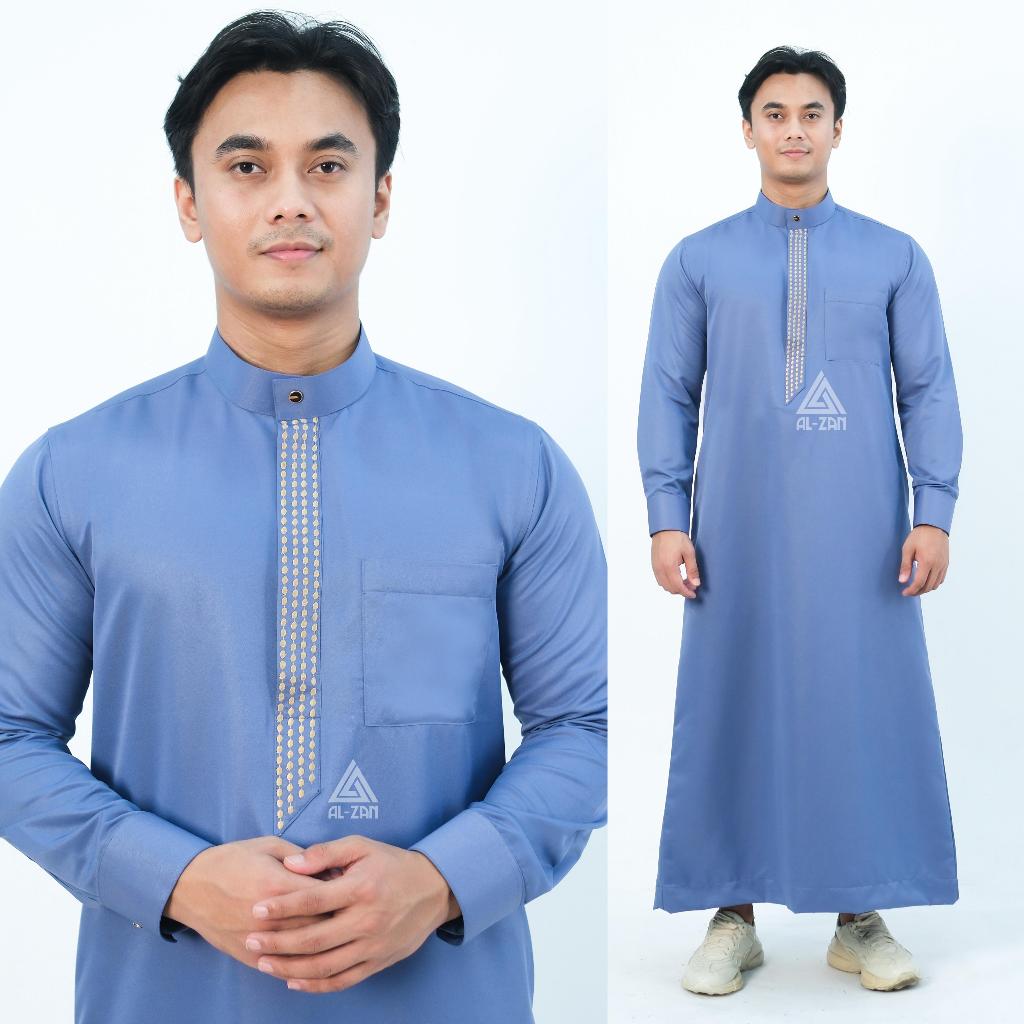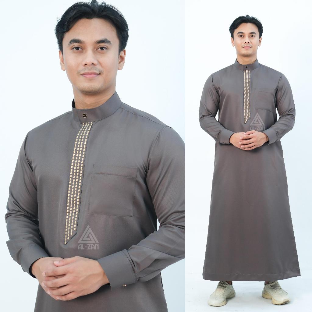 jubah pria muslim slimfit jubah gamis pria lengan panjang Bordir busana muslim baju jubah muslim Katun Toyobo Manset Dewasa Hitam Putih Arab alzan bordir jubah