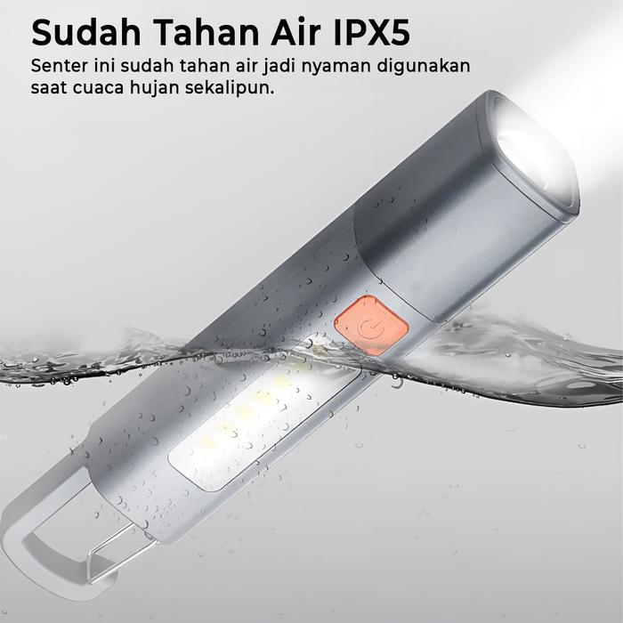 H2S SENTER LED ZOOM IN OUT 5 MODE FLASHLIGHT COB WATERPROOF TYPE C HS119 - SENTER LED ZOOM IN ZOOM OUT HS119