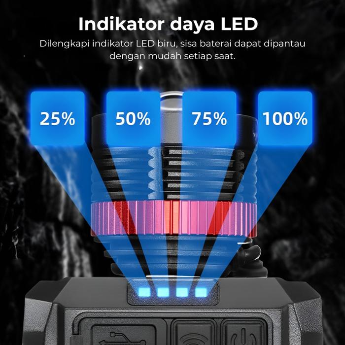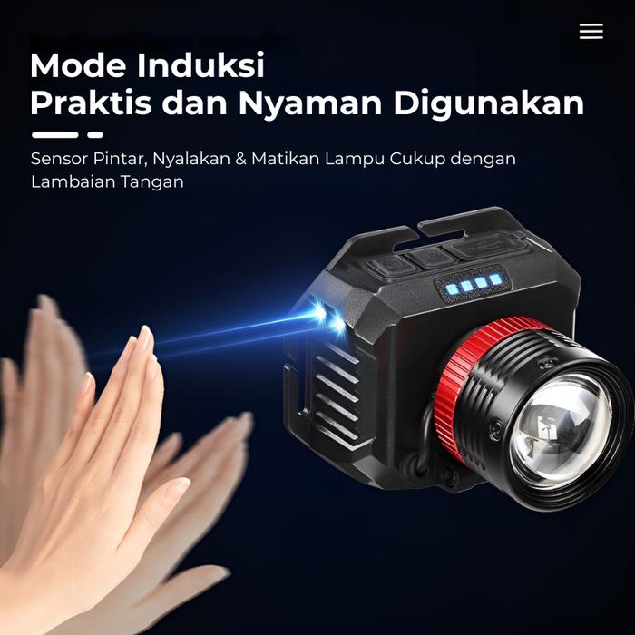SENTER KEPALA CAS LED LASER SENSOR GERAK 50W 2 BATERAI 5000MAH ZOOM OUT IN PUTAR HS-4877P - CAHAYA PUTIH