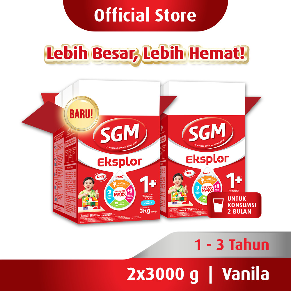 SGM Eksplor 1+ dengan IronC Susu Pertumbuhan Rasa Vanilla 3000GR x 2