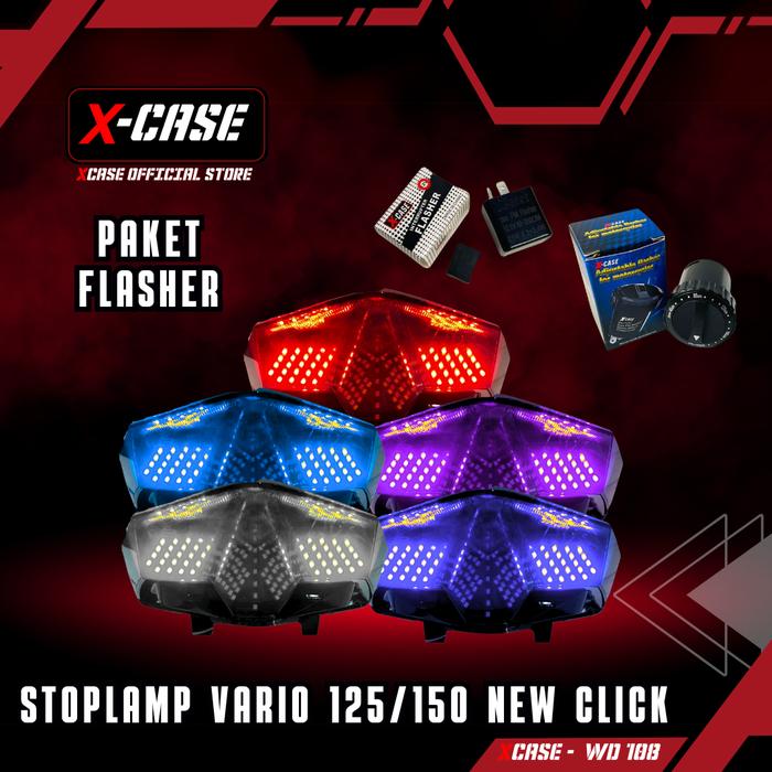 X-Case Lampu Stoplamp Led Vario 125 150 New 2018-2020 Led Stop Belakang Vario New Running WD 108 - MERAH TANPA FLASHER