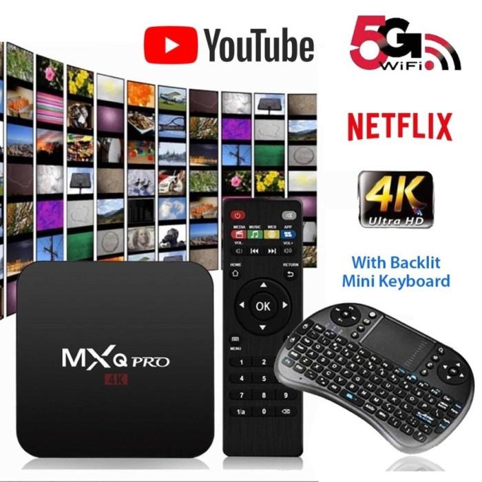 ( BISA c06 ) SET TV BOX STB ANDROID TV MXQ PRO 5G INTERNET BONUS KEYBOARD Adaptor Kabel Televisi - RAM2+ROM8