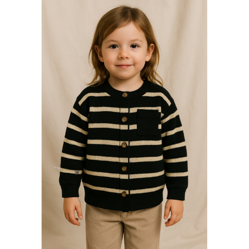 Cardigan Anak Perempuan Cardigan Girls Sweaters Children's Soft New Knit Child Classic Striped Round Neck Sweatshirt Tod