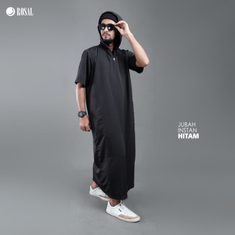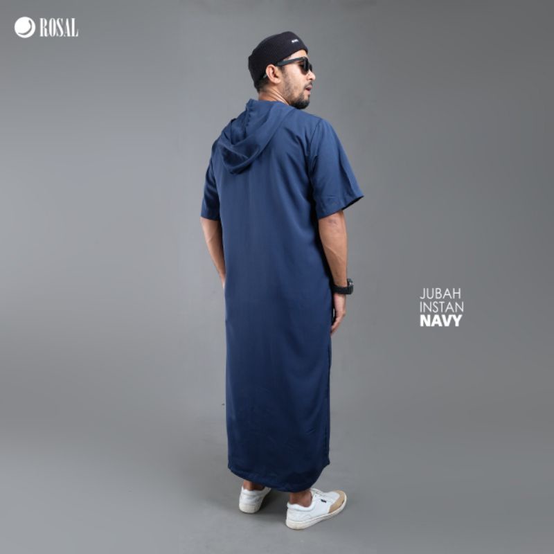 Jubah Gamis Hoodie Pria Jubah Instan Rosal Lengan Pendek Jubah Dewasa Gamis Laki laki Jumbo Big Size Jumbo Ukuran besar / Jubah Gamis Pria XXL XXXL - Putih, Hitam, Navy,