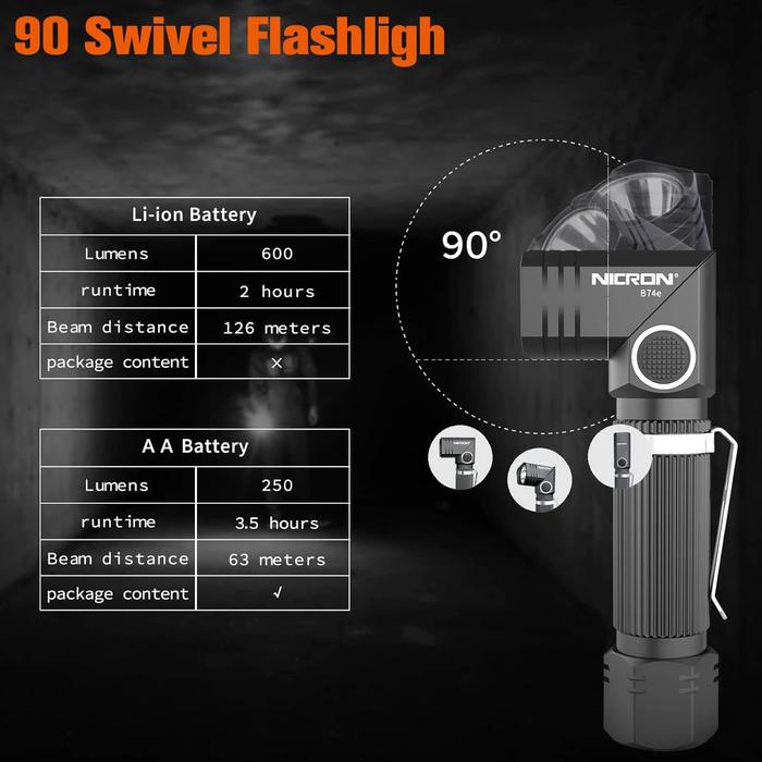 NICRON FLASHLIGHT B74E RECHARGEABLE 90 DEGREE LED TORCH 600 LUMEN WITH 4 LIGHT MODES