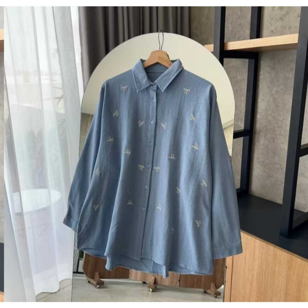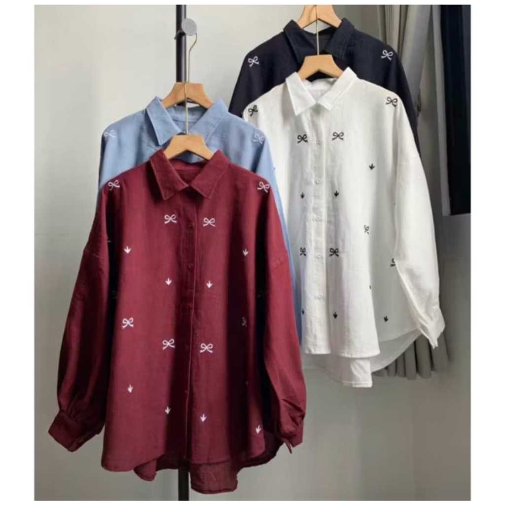Baju Atasan Wanita Terbaru Bordir Pita Kecil Kemeja Wanita Bahan Adem Jumbo