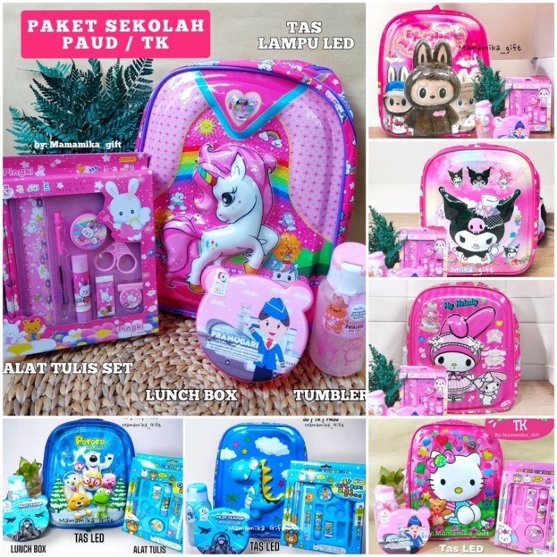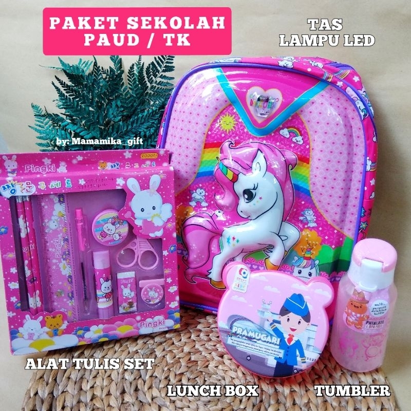 Paket Anak Sekolah Tk Unicorn / Tas Ransel Anak Tk Karakter Dino Astronot Frozen Hello Kitty Dll