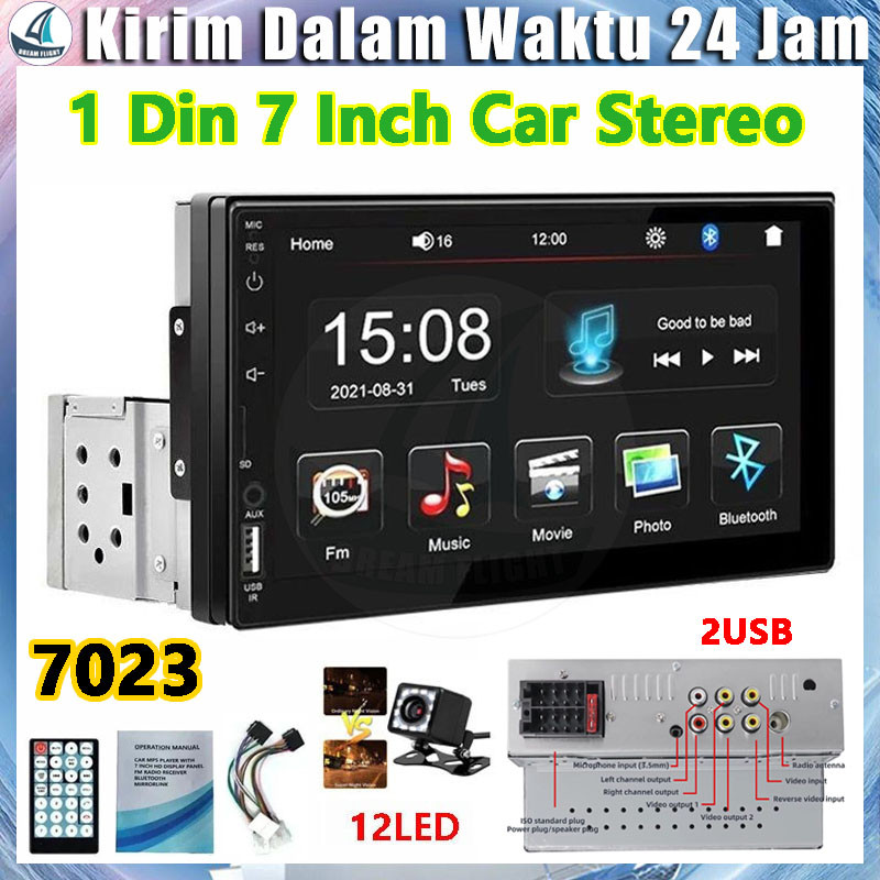 Stok Tersedia - Head Unit 7Inch 1Din 7023 Mirrorlink MP5 Touch Screen HD Bluetooth Radio FM / USB / TF
