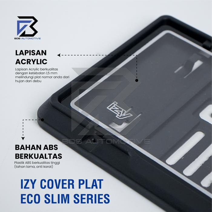 IZY Cover Dudukan Tempat Frame Breket Bingkai Rumah Tatakan Plat Nomor Mobil Model Eco Slim dengan Cover Akrilik - HITAM