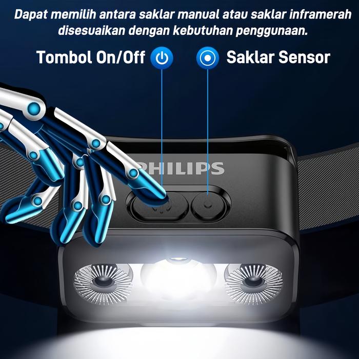 PHILIPS SFL3153 HEADLAMP - SENSOR GERAK 140° & TAHAN 8 JAM SENSOR OTOMATIS CAMPING KERJA SENTER LED