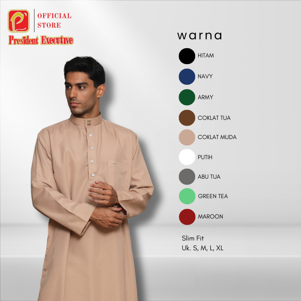 President Executive - Gamis Pria Jubah Laki Laki Polos Lengan Panjang Reguler Oblong Serie Viskin