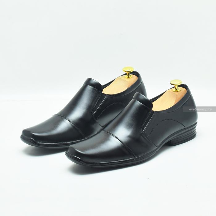 SEPATU PANTOFEL FANTOFEL SHOES KERJA KANTORAN PRIA WETAN GALUH 1 HITAM SLIP ON UKURAN BESAR JUMBO BIG SIZE 37 - 48 - HITAM, 38