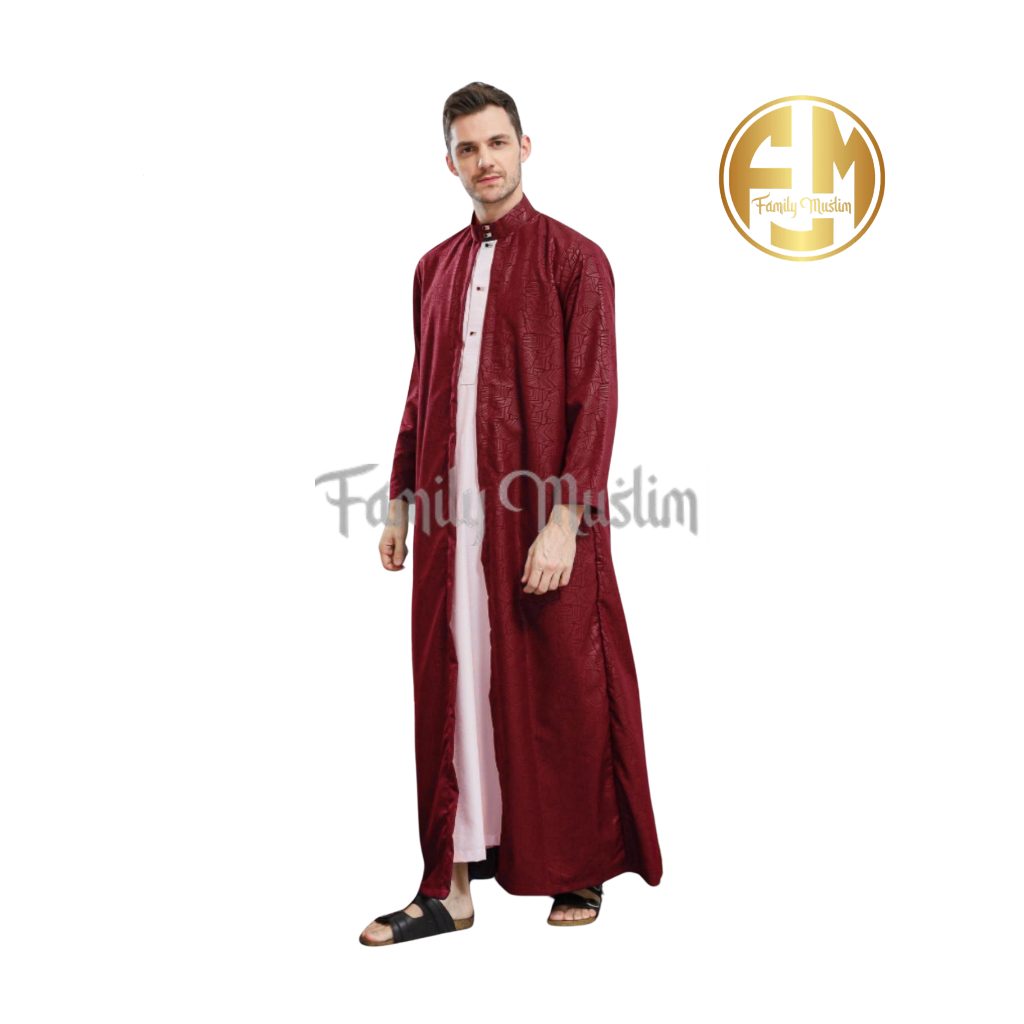 Family Muslim - Jubah Gamis Pria Dewasa Lengan Panjang 2in1 Al-Azhar Hiitam