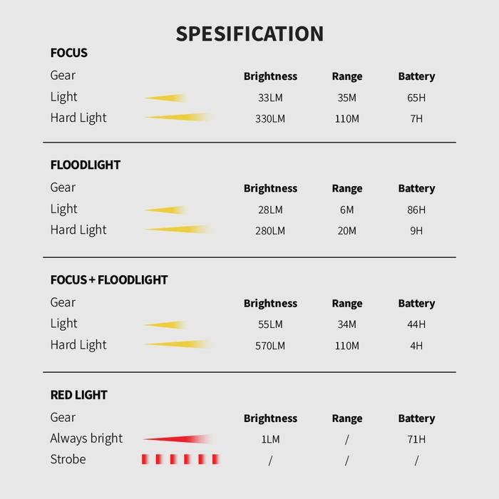 LAMPU KEPALA SUNREI MUYE3 HEADLAMP JARAK JAUH 570 LUMENS IPX5 OUTDOOR - WHITE