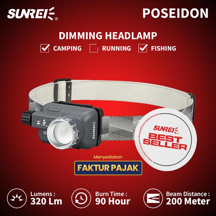 LAMPU KEPALA HEADLAMP SUNREI POSEIDON ZOOM 320 LUMENS IPX5 - READY