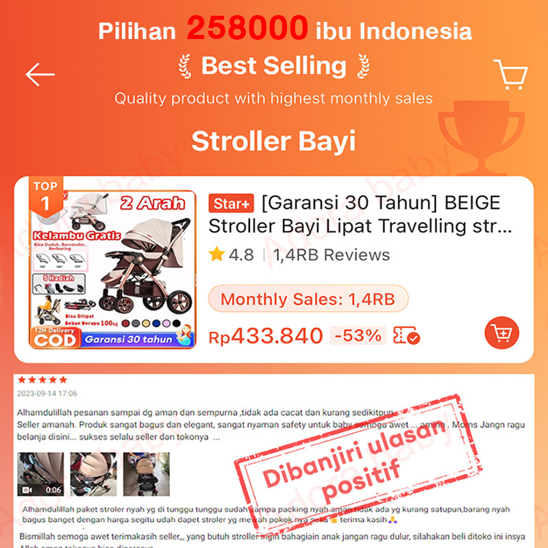[Garansi 30 Tahun] Beige Stroller Bayi Lipat Travelling Stroller Baby 2 Arah Beban Berapa 100kg