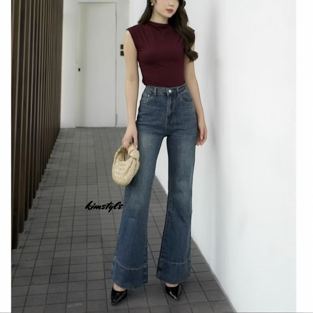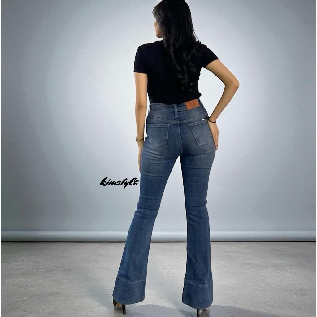 Jennie-HighWaist Cutbray Jeans Celana Fit & Flare Panjang Stretch Wanita Retro Vintage Lipat Bawah