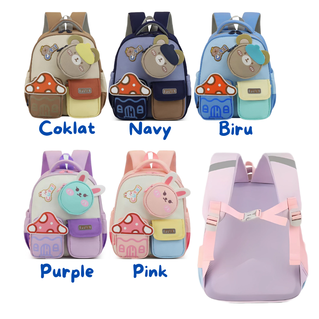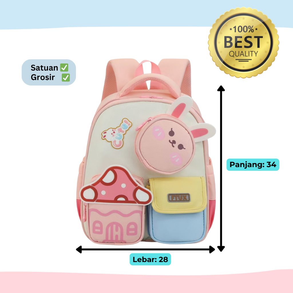 Mushbuddies - Tas Ransel Import Anak Anti Air Kelinci Ber Sd Tk Backpack Pengait Dada