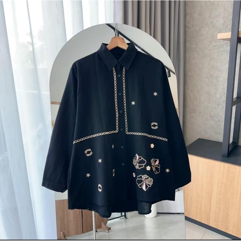 Alyssa Blouse Bordir / Kemeja Wanita Oversize / Blouse Bordir Panjang Bahan Linen Premium