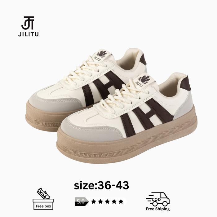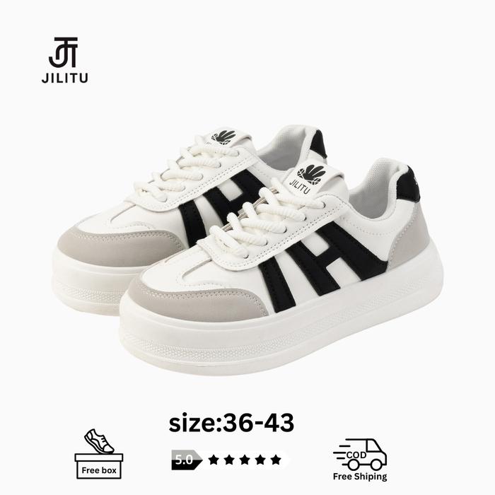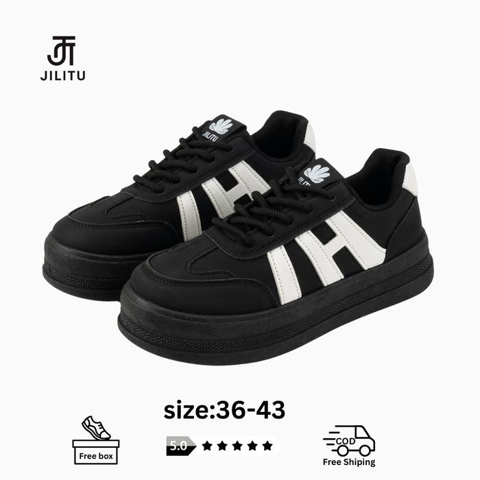 Jilitu Hk-02 Sepatu Wanita Sneakers Fashion Korean Trend Karet Casual Shoes Kasual Sport Cewek Olahraga - Navy, 36