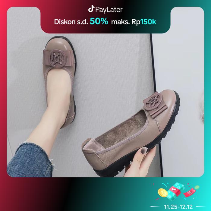 Lurad Sepatu Wanita Slip On Kulit Flat Shoes Sneakers Sport Simple Sepatu Cewek Formal Casual Hitam Fashionable Karet 1