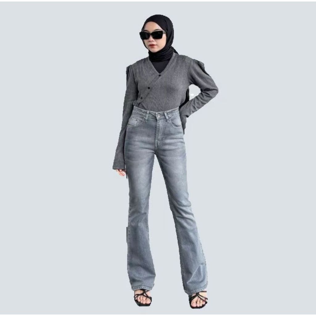 HW Cutbray Jeans Wanita - Celana Cutbray wisker Strecht Kekinian - Cutbray Flared -Streetch Premium