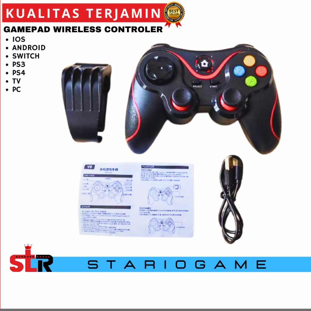 Stik gamepad HP android wireless bluetooth stik Game PC TV Stick PS3 PS4 IOS komplit holder dan charger stik gamepad