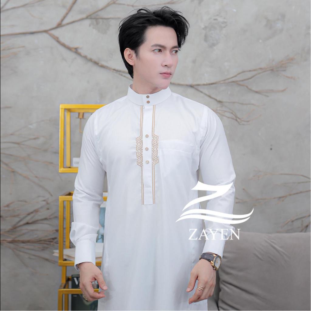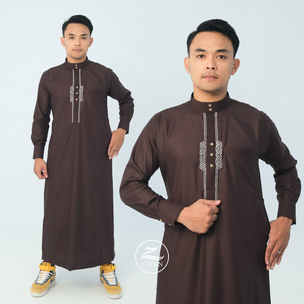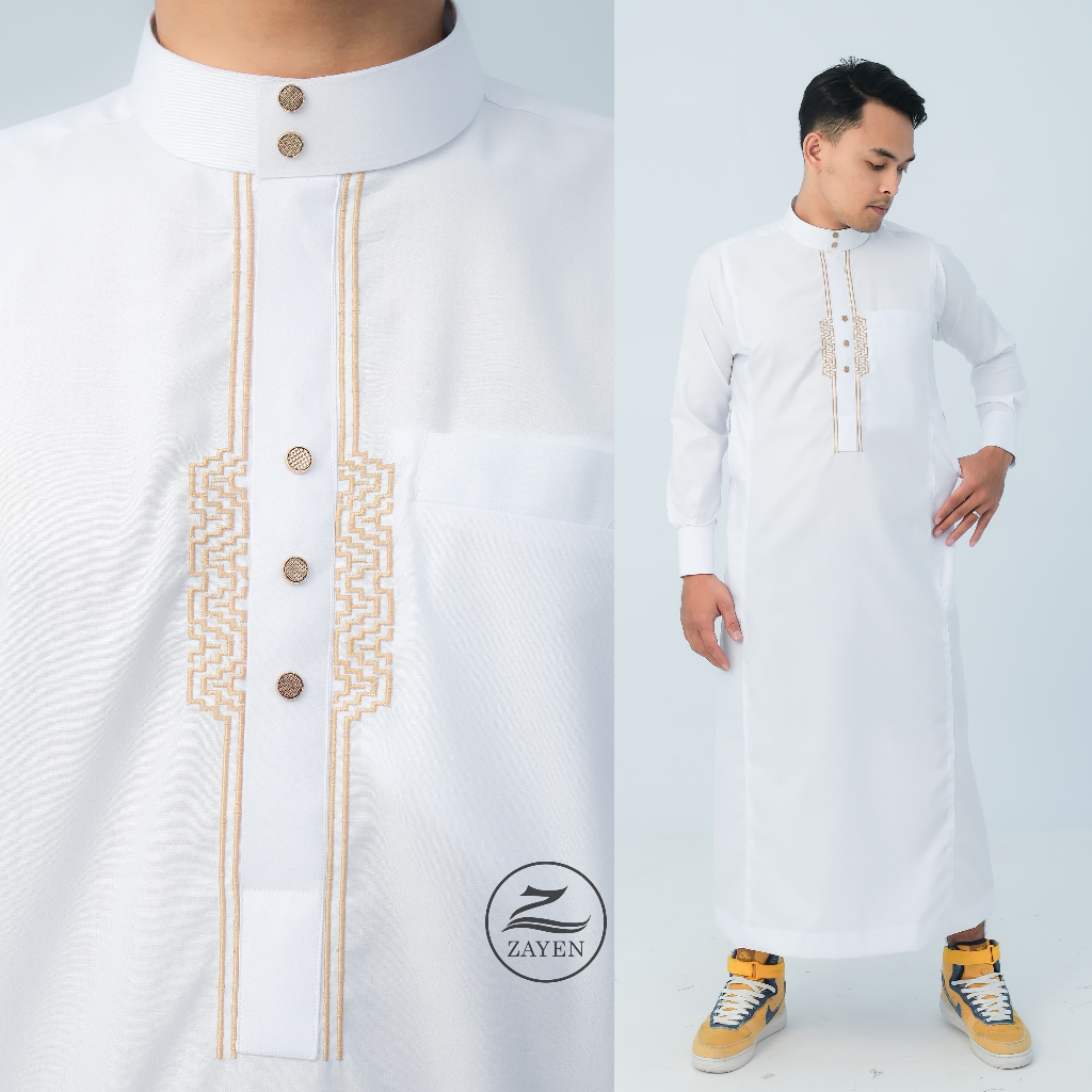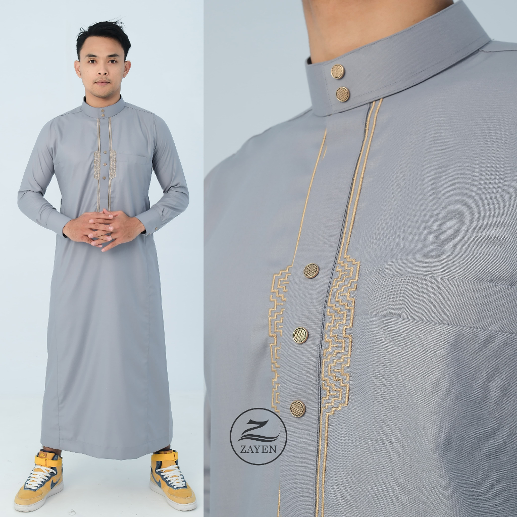 Jubah slimfit pria gamis pria jubah muslim pria bordir jubba saudi gamis alfaan tangan panjang manset hitam dewasa kancing/Model terbaru