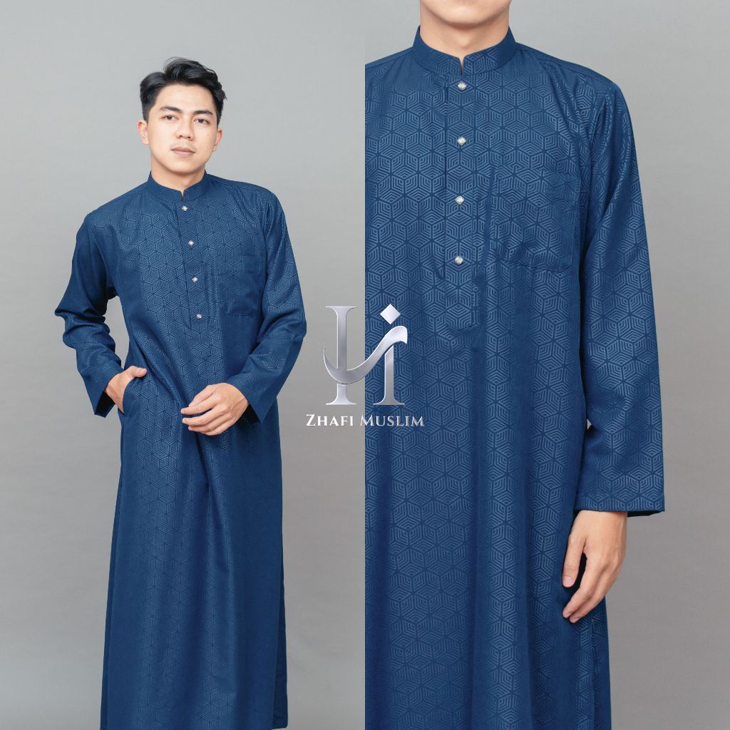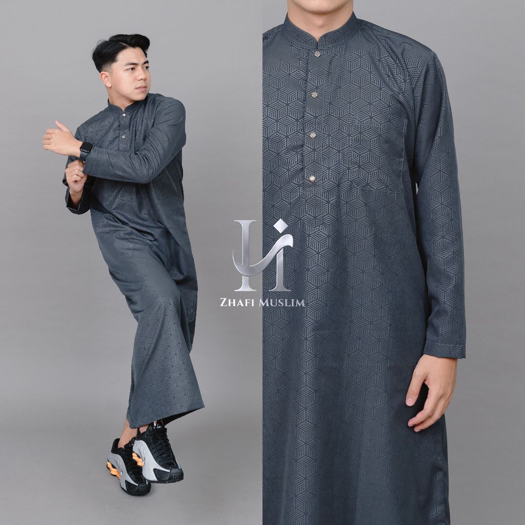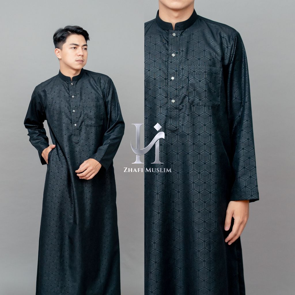 ZHAFI MUSLIM - Gamis Jubah Cowok Lengan Panjang Bahan Cotton Embos Motif Hexagonal - JD Malik