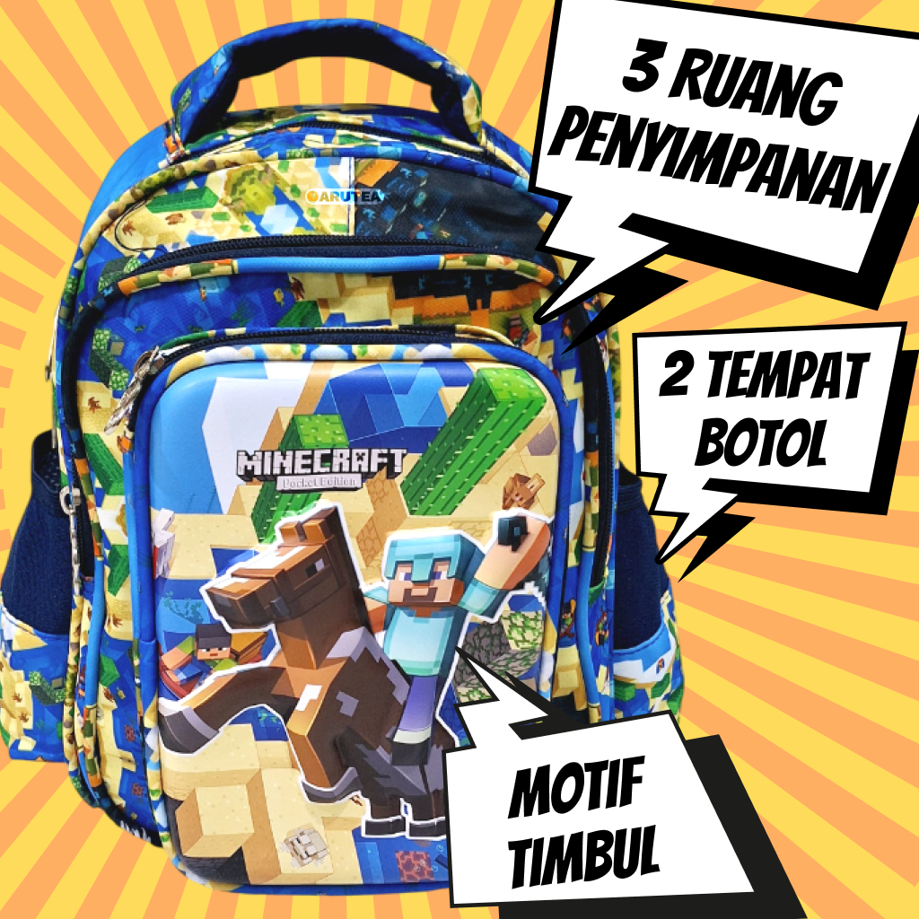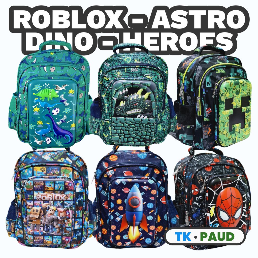 Arutea - Tas Dino, Roblox, Minecraft, Spiderman, Harry Potter Motif Timbul Dan Tempat Pensil - Ransel Anak Laki-Laki | S
