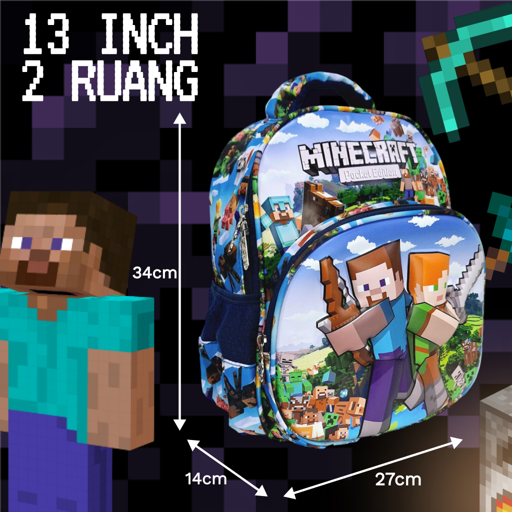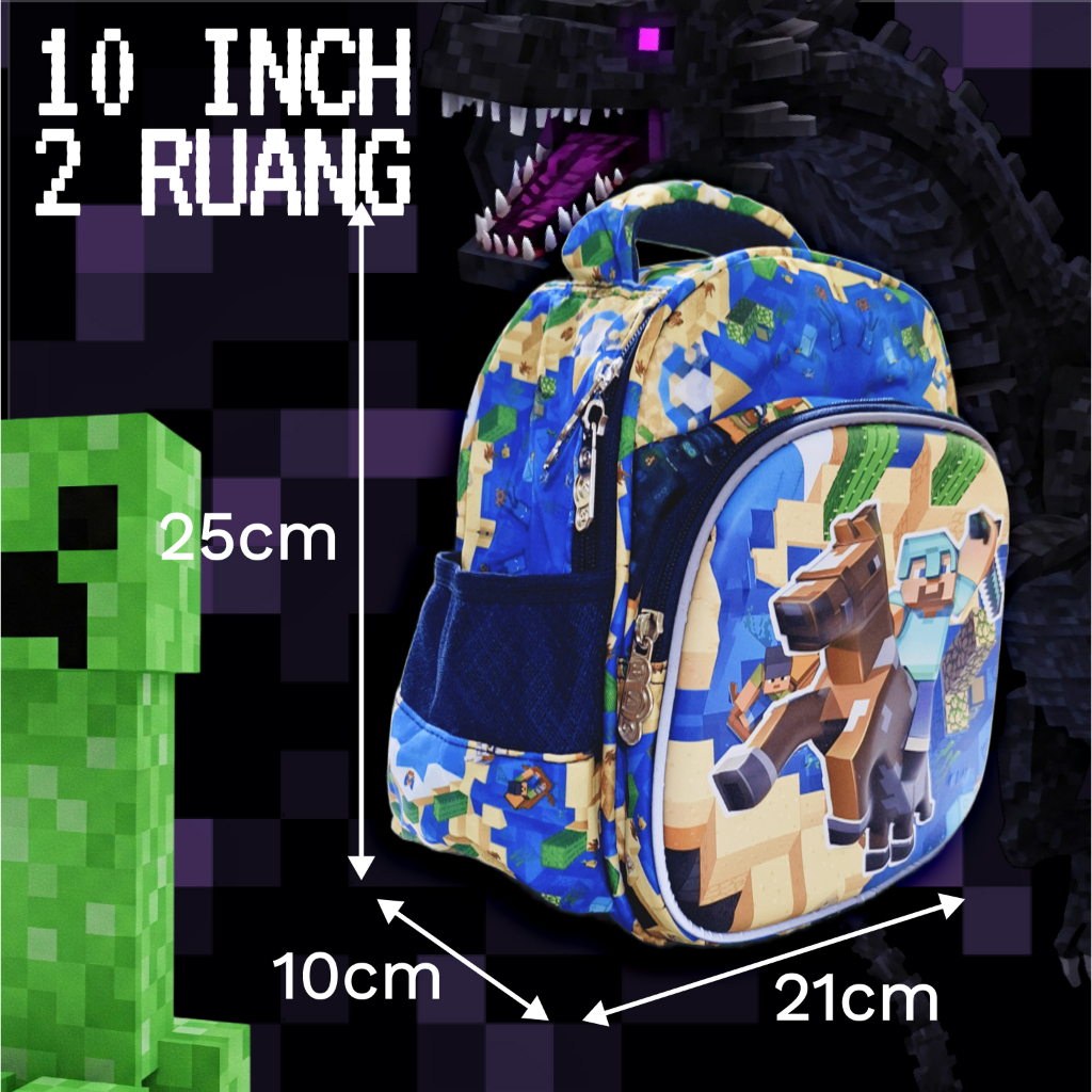 Arutea - Tas Minecraft Motif Timbul - Ransel Anak Laki-Laki | Sekolah Pg/Paud/Tk/Sd