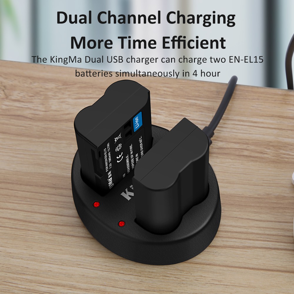 KINGMA Battery Nikon EN-EL15 2-Pack with Dual Charger - Non Lcd Display