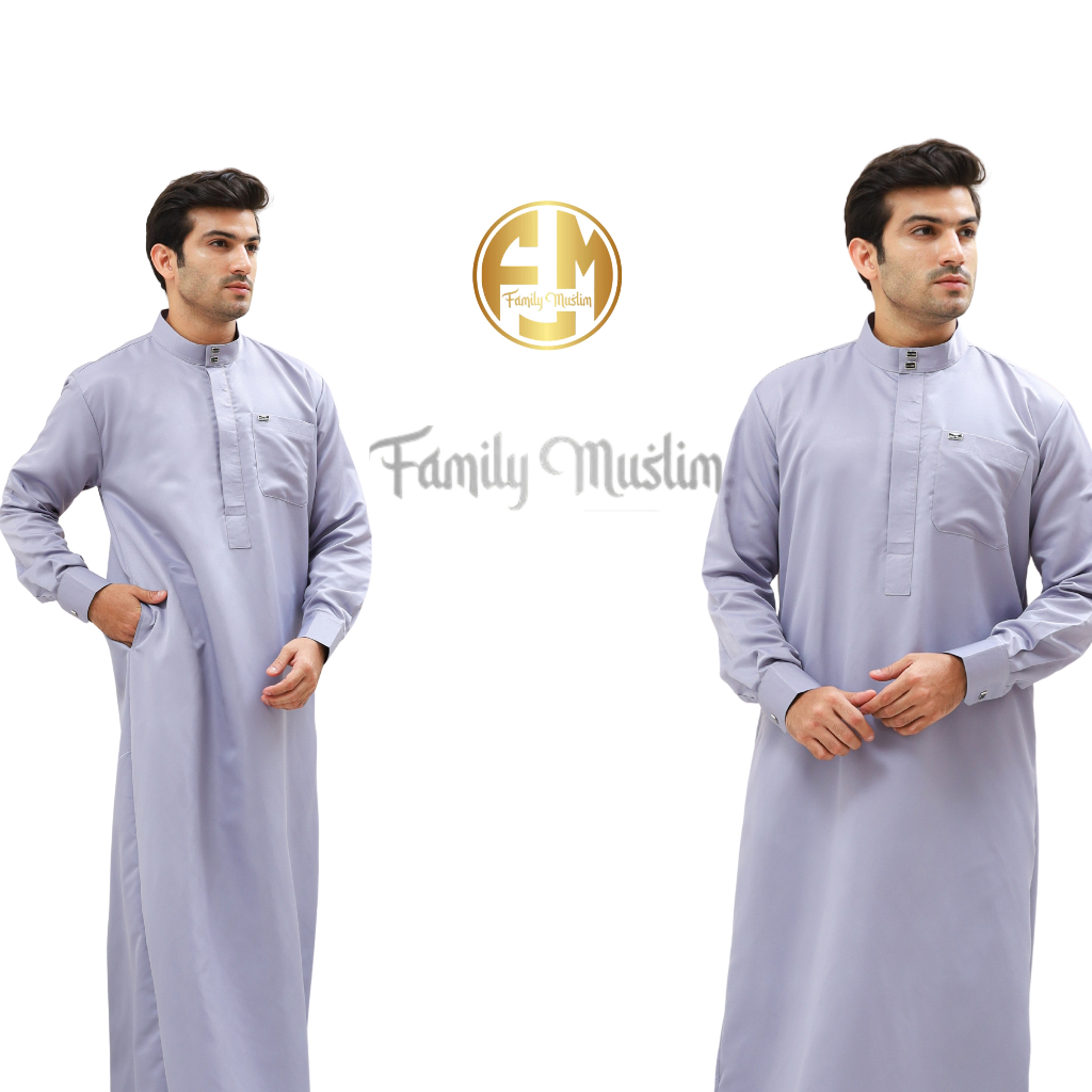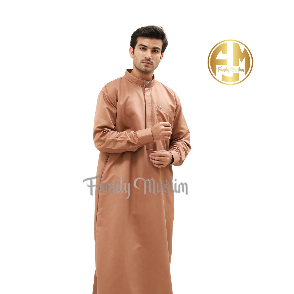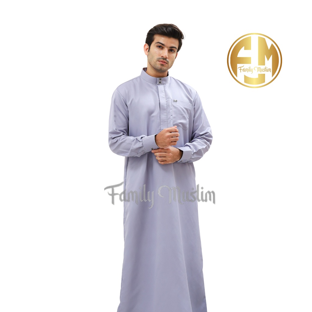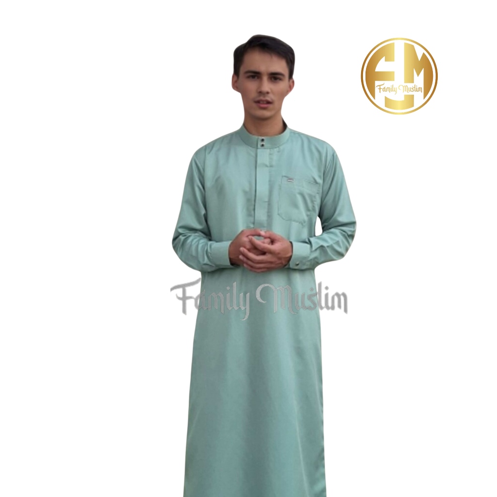 Family Muslim - Jubah Pria Lengan Panjang Slimfit Reseleting Aufar Hitam