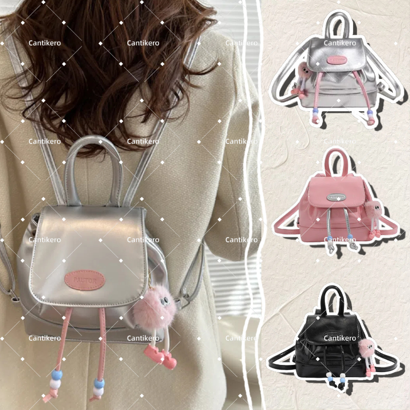 Cantikero Tas Ransel Wanita Kulit Mini Korea Fashion Import Tas Backpack Lucu Liontin Gratis