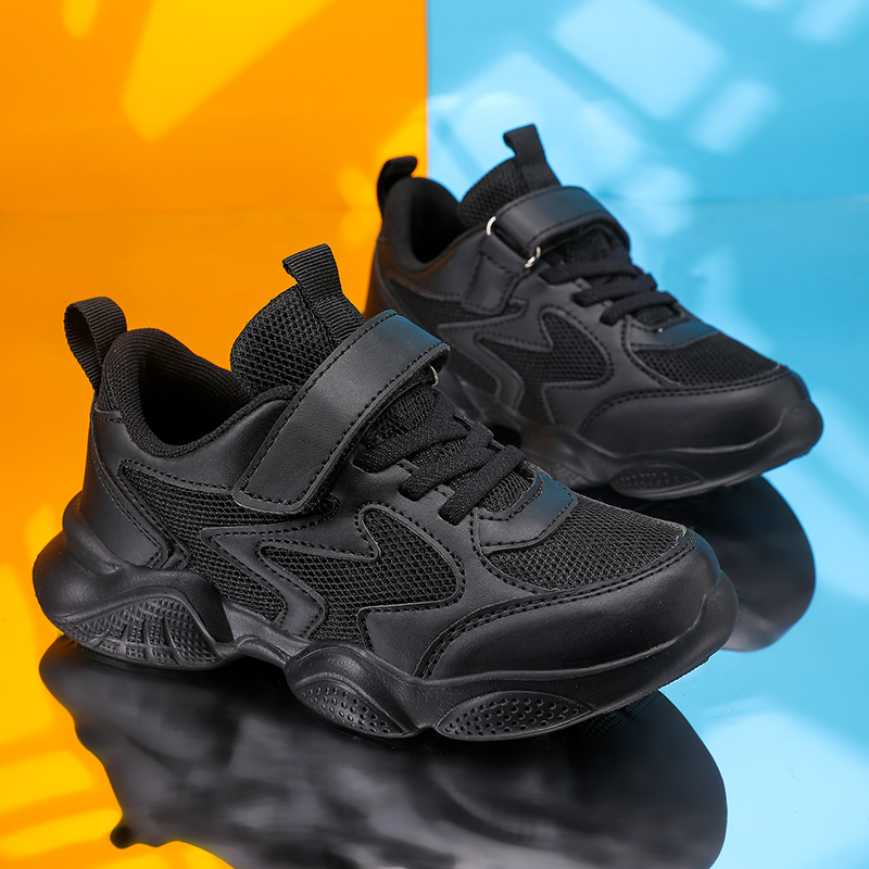 Aningaingboy-Sepatu Sekolah Anak Ukuran Sneakers Hitam Velcro Sepatu Anak-Anak 28-37 Full Hitam