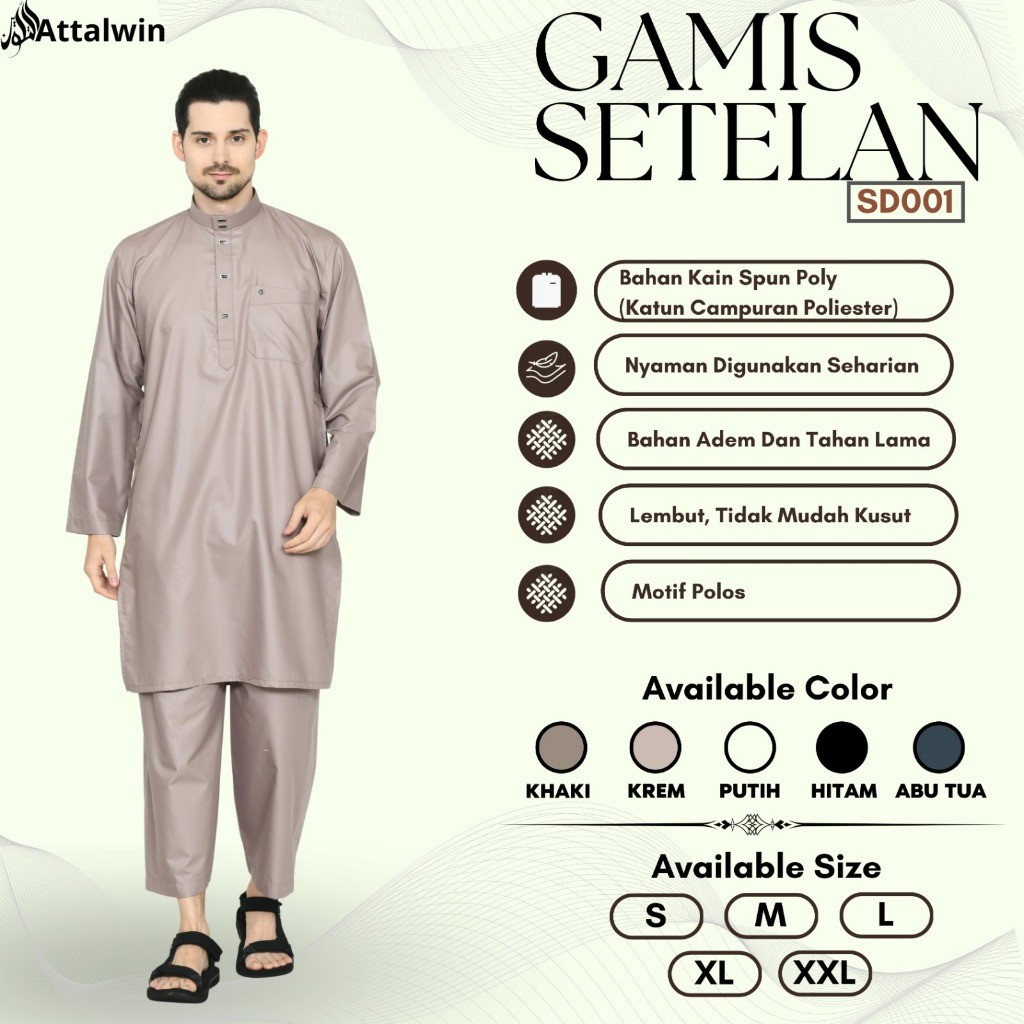 Jubah Pria Baju Muslim Setelan Jubah Kurta Polos SD001 Adem Nyaman Size S - XXL By Attalwin