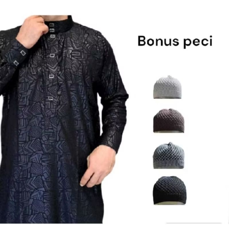 jubah manset pria dewasa bahan katun embos premium berkualitas terbaru + PECI